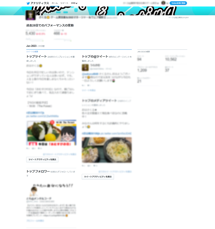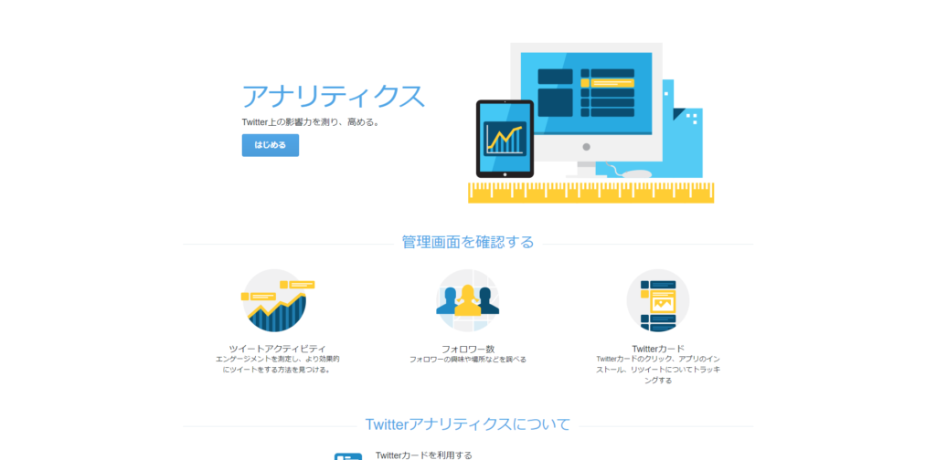 Twitterにも実績データを確認するアナリティクス画面が存在するので、そのページの簡単な紹介をしていきます。